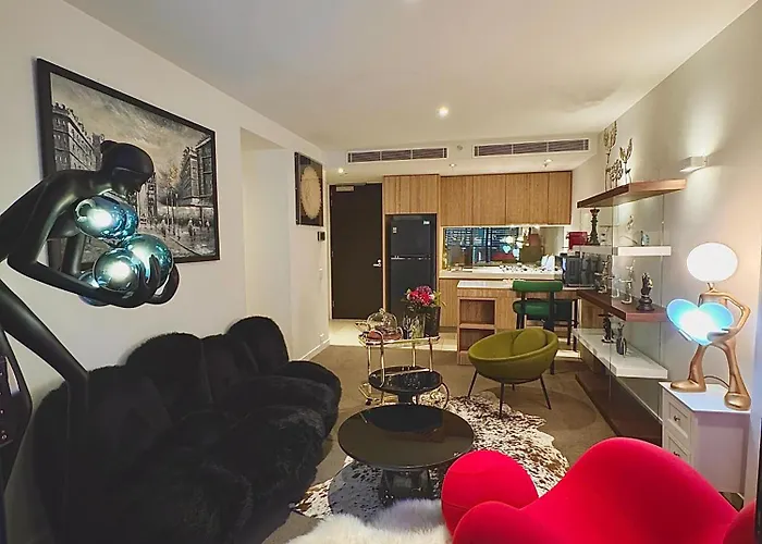 Lux apartment Ville de Ville de Melbourne est situé à seulement 1 km de l'Aquarium de Melbourne et à moins de 13 minutes à pied du Musée de l'immigration. Doté d'une terrasse avec vue sur le jardin, l'appartement se trouve à proximité du Musée Australian Centre for the Moving Image.